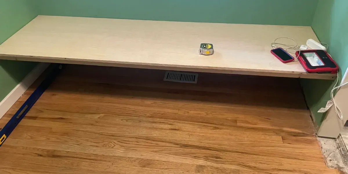 This project involved installing a seamless transition between two flooring types — carpet and hardwood — to enhance both durability and appearance. The previous edge showed visible wear and fraying, creating an uneven and unfinished look. We replaced it with a custom-fitted wooden threshold that blends perfectly with the hardwood’s tone while providing a smooth transition to the carpeted area. The finished result delivers a clean, professional look that ties the spaces together beautifully and extends the life of both floor surfaces.