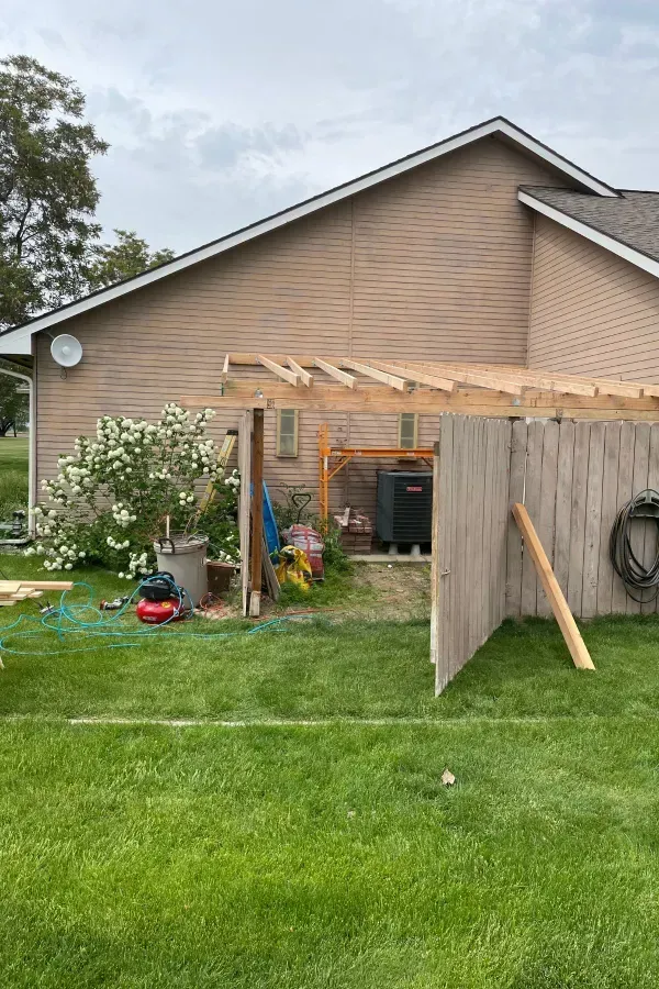 This project involved designing and constructing a custom shed roof extension to provide added protection and functionality for an outdoor storage area. The process began with framing and structural support installation, ensuring proper pitch and stability. Rafters were measured and secured, followed by the addition of a durable metal roof panel system to match the existing home exterior. The finished result is a sturdy and weather-resistant structure that enhances storage space while blending seamlessly with the home’s design.